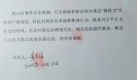 面对巨额集体资产的持续流失和维权艰难,霞山村村民已进行集体联名举报,并提出明确诉求: